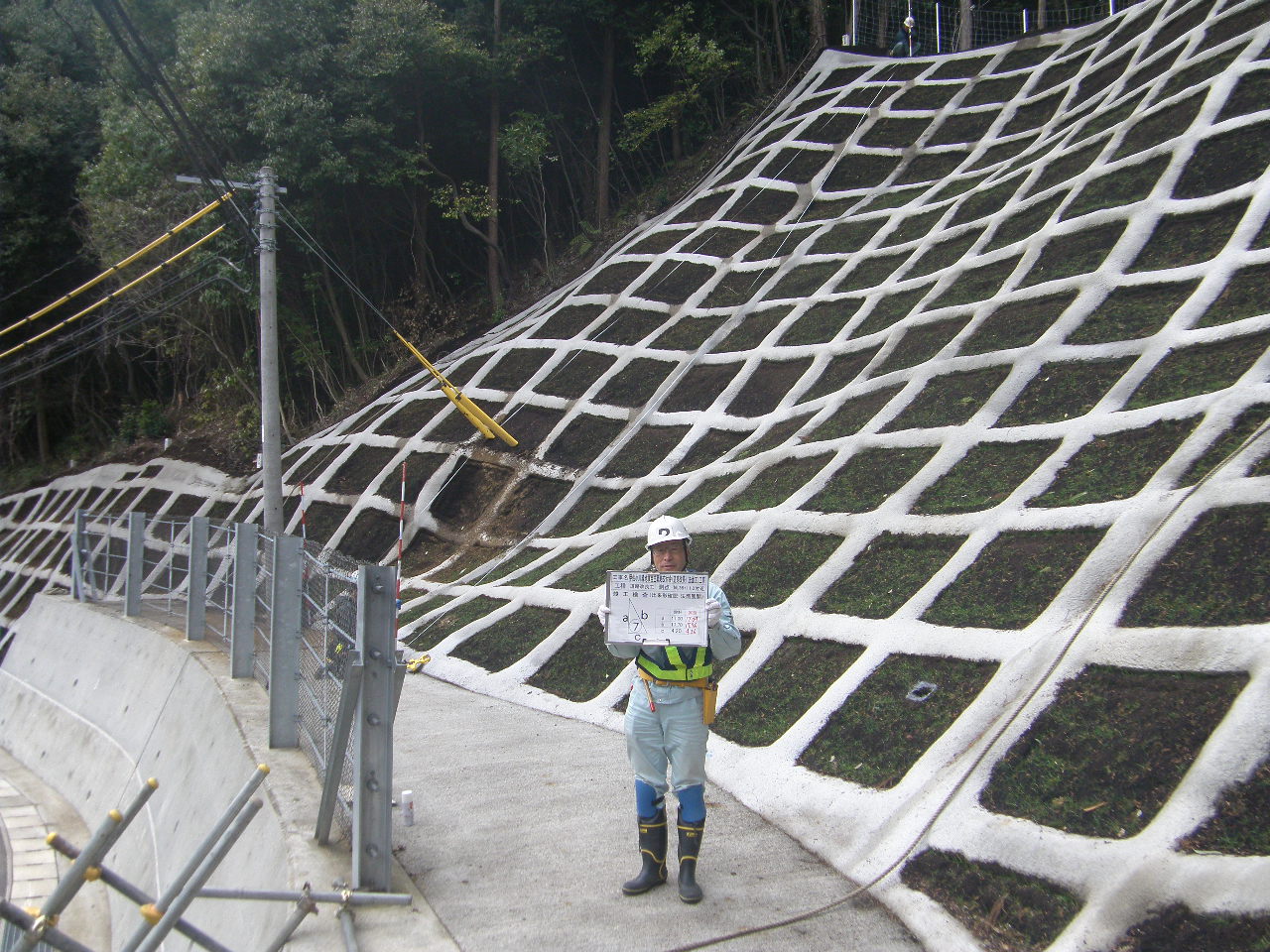 掘削 310m3、吹付法枠(枠内植生基材)2495m2、(枠内モルタル)71m2