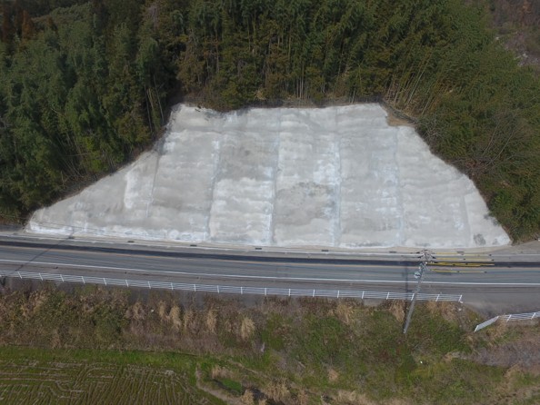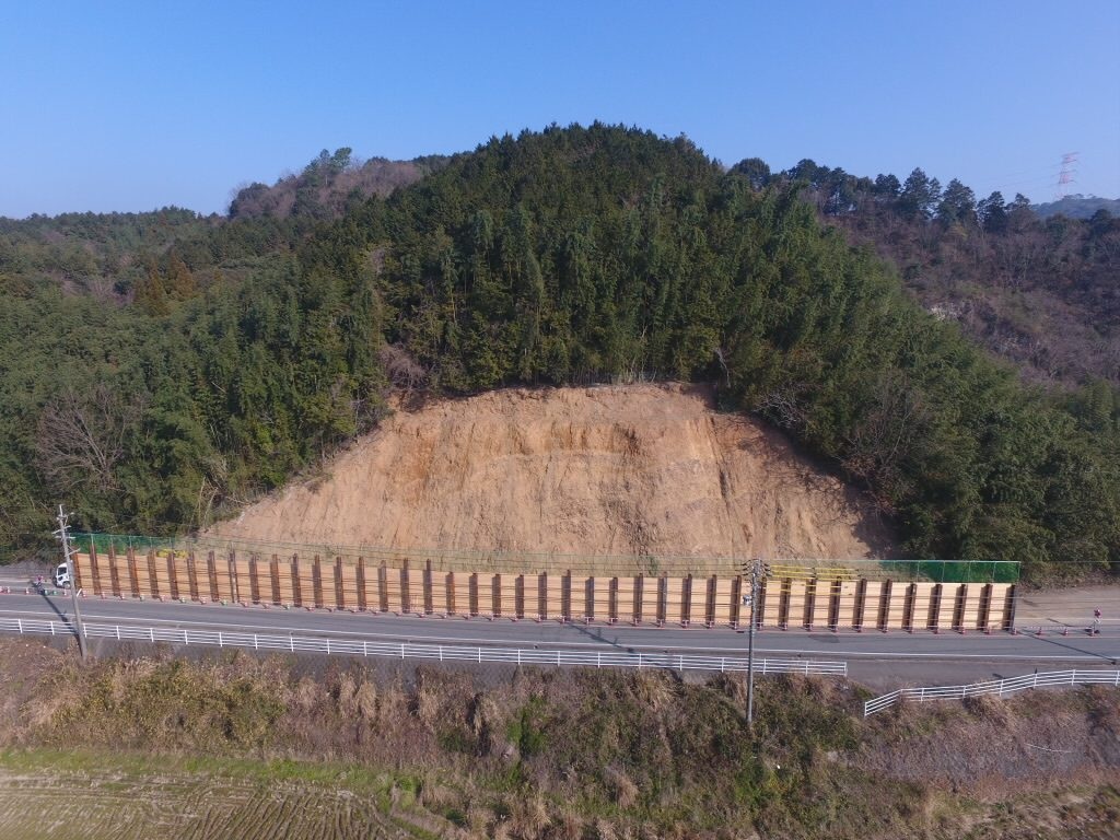 モルタル吹付 1254m2、表層工+基層工 各83m2、仮設防護柵 82m