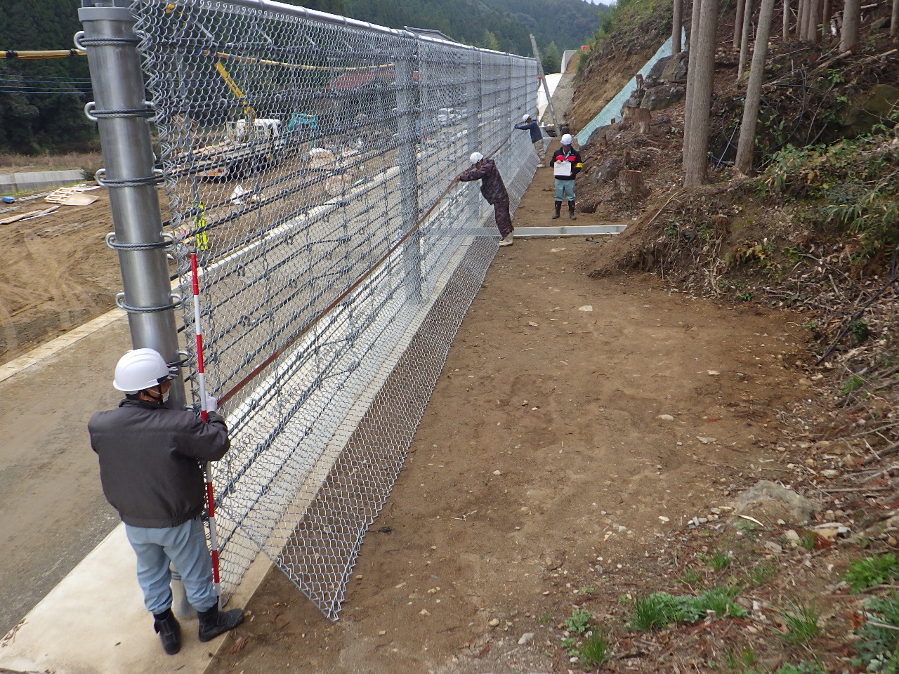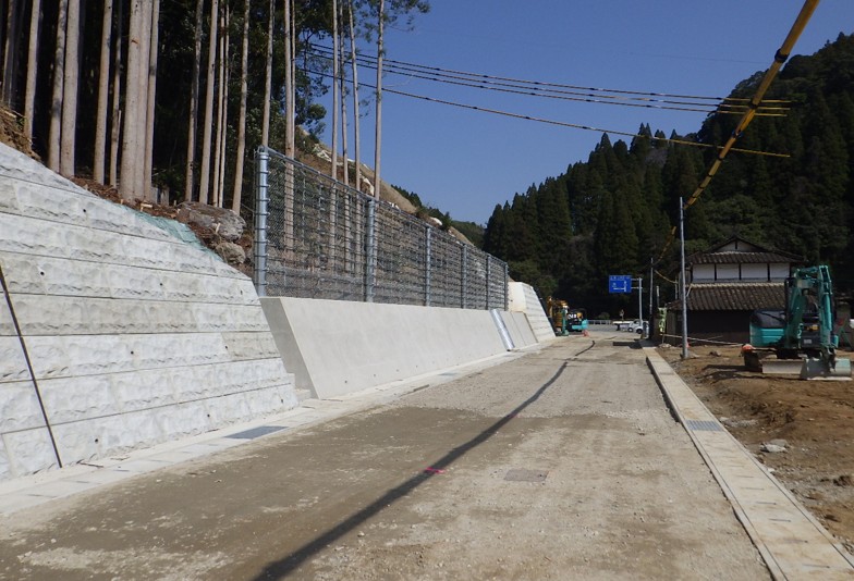 重力式擁壁工133m3、ループフェンス工 30m、排水構造物工 37m、下層路盤工159m2