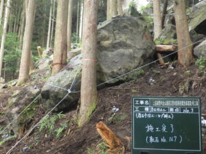 固定工No.1ロープ伏工810.0m2、No.2ロープ伏工567.0m、No.1ロープ掛工2.0m2、No.2ロープ掛工1.0m2、No.3ロープ掛工1.5m2、高エネルギー吸収柵19m、運搬道1式